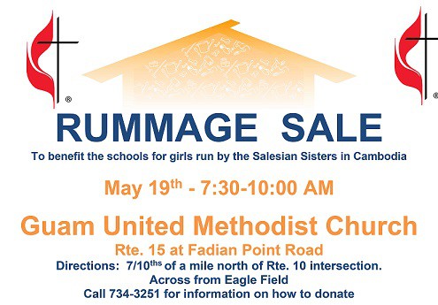 There will be a rummage sale on May 19, 2018 from 7:30 – 10:30am at the Guam United Methodist Church, Rte. 15 Fadian Point Road. Proceeds will benefit the schools for girls run by the Salesian Sisters in Cambodia. The Salesian Sisters is a religious congregation who are fully involved in the education of children and the development of young women in 94 countries, including Cambodia and most of the countries in Asia, Africa, Europe the Americas and in Oceania. Through formal and informal education in their schools, welcome homes, street-children’s centers, youth hostels, orphanages and training centers, the young are taught to be productive citizens in the future. For more information on how to donate you may contact 734-3251.